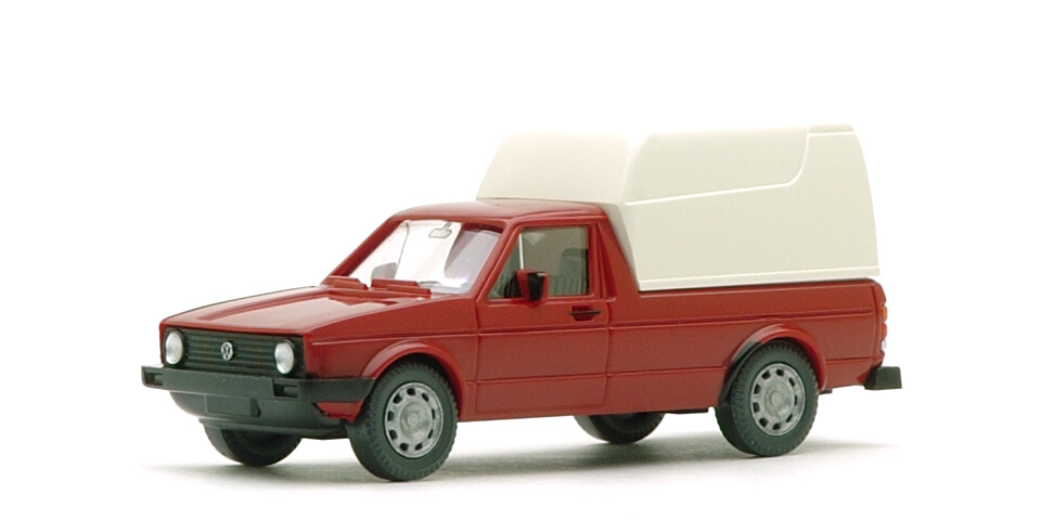 さて、Wiking製のこのミニカー、ある意味当然のことながら1983年以降の"Caddy"をモデルにしています。"Ladeflächenaufsatz"(カーゴトップ)の実物はFRP製で、欧州地域での屋根つき荷台へのニーズに応えたものですが、そのオリジナル形状をみごとに再現しています。