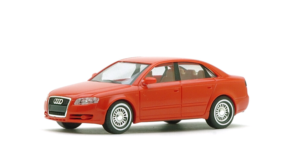 1:87ミニカーは前作に引き続きBusch製。ボディ側はもちろんのこと、アンダーカバーやサイドステップがボディ同色化したことにより車台側も新規に作り直しとなっています。Verkehrsrotは2025年の新商品。近頃はおなじクルマのミニカーを再生産する際にボディカラーを変えるだけでは訴求力が足りないとでも考えているのか、あたかもオーナーが「カスタム」したかのような「スポーティ」ホイールを履かせる例というのが増えています(HerpaやWikingでもやっています)。個人的にはそもそもこの風潮自体あまり良いものとは思っていないのですが、このA4に関してはピレットホイールにホワイトリボン・タイヤと抜群に趣味が悪くて閉口させられます。どこに向いてミニカーを作っているのかさっぱりわかりません。