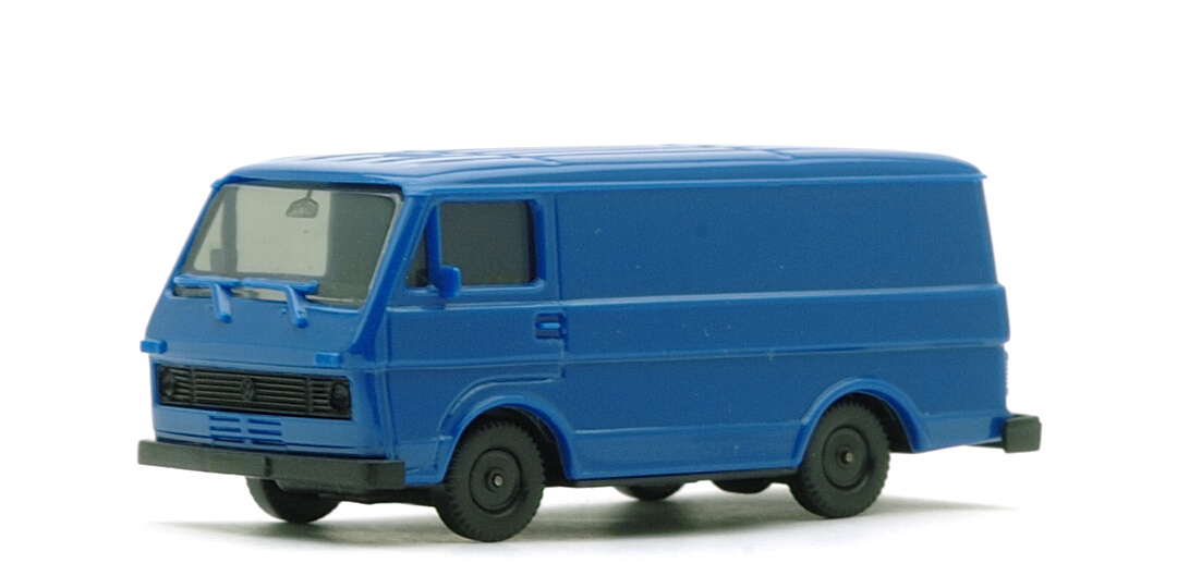 Herpa製のLT Kasten。2,500mmホイールベースには最大車両重量別にLT28、LT31、LT35の3種類があるのですが、その識別はAピラー下部に貼られているエンブレムによってのみ可能となっています。この時期のミニカーではそのような細部まで再現されているわけもありませんので、正確な形式の特定はできません。Kastenでも2回金型が改修されていて、計3種のバリエーションが存在しますが、これらはサイドミラーの位置およびワイパーモールドの形状により区別することができます。